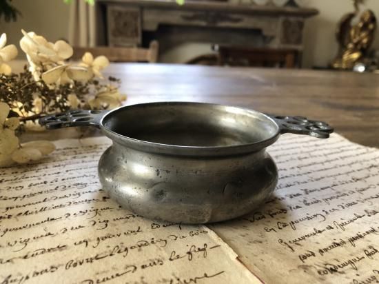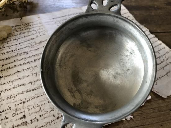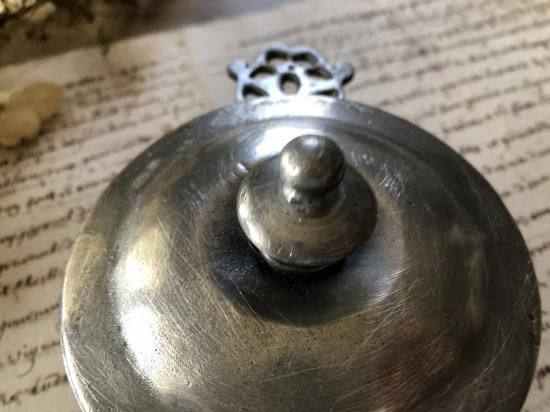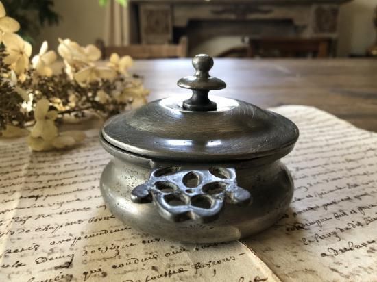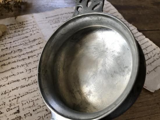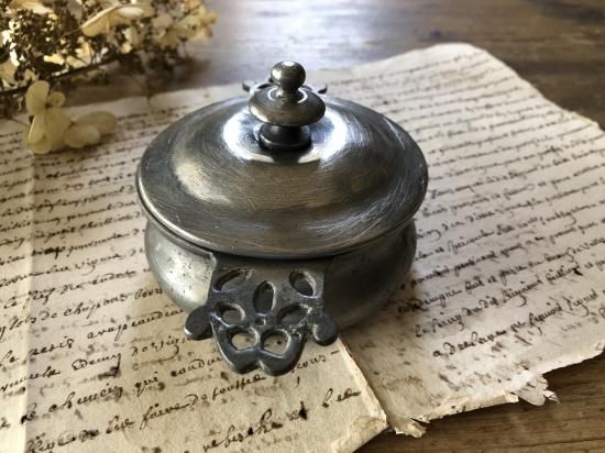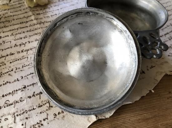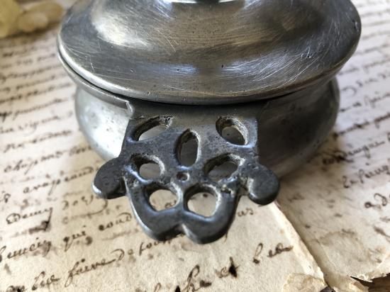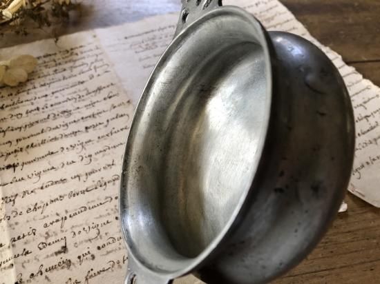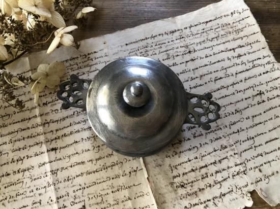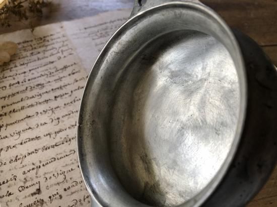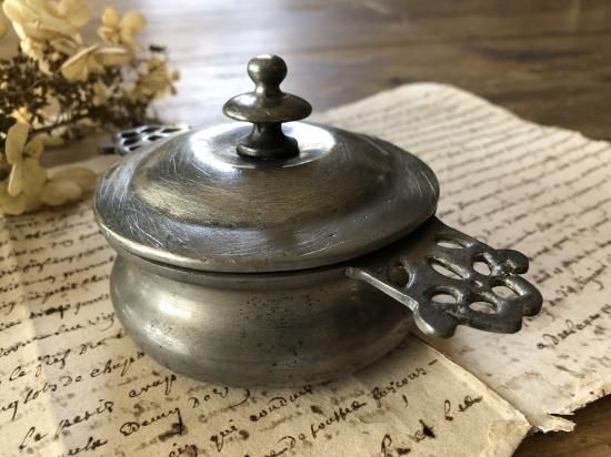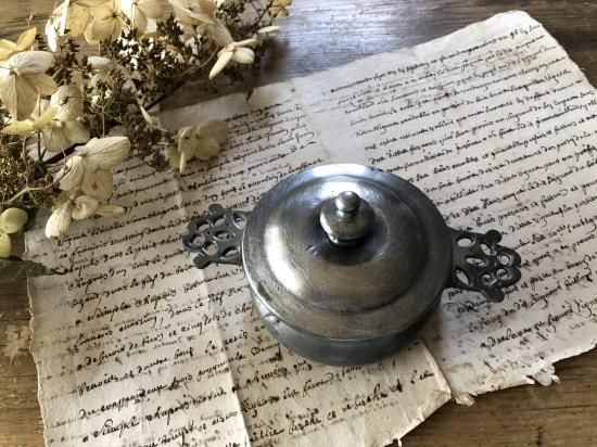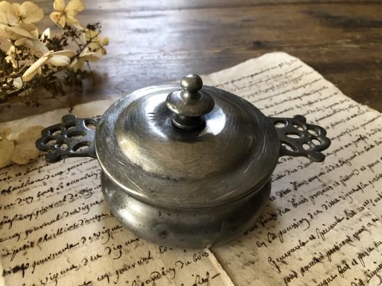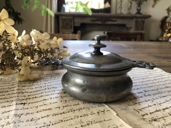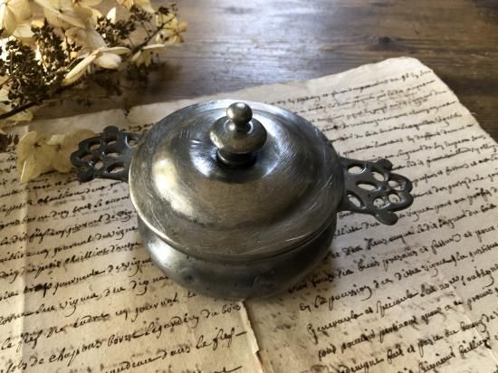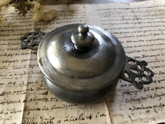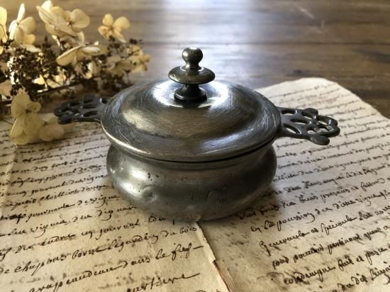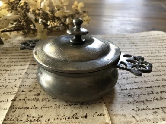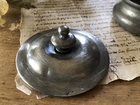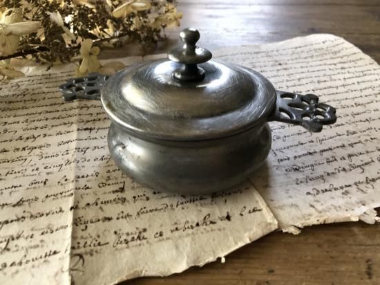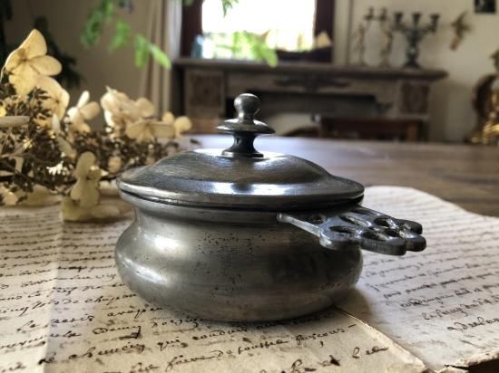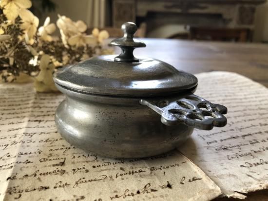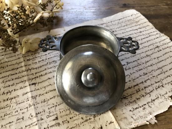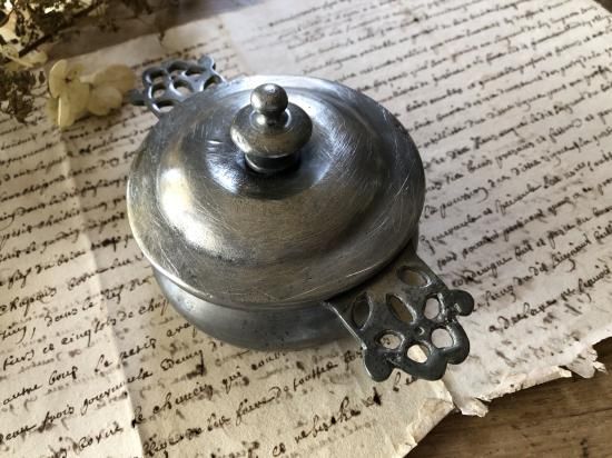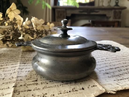 フランス/渋い輝きが美しい19世紀の蓋付きピューターボウル/小鍋