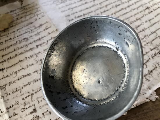 時を重ねたピューターの渋い輝きがとても美しく、時を刻む歪みもチャーミングです。