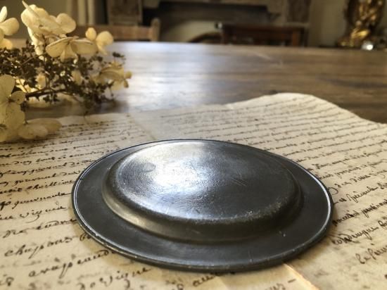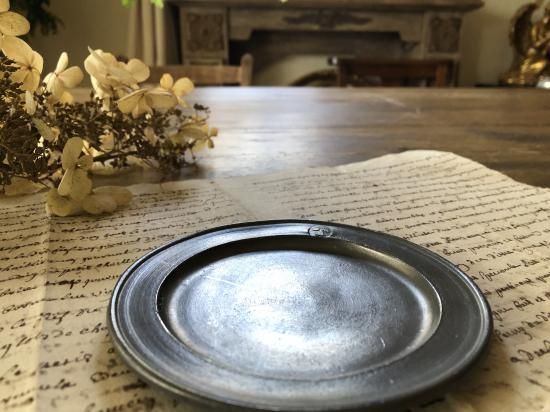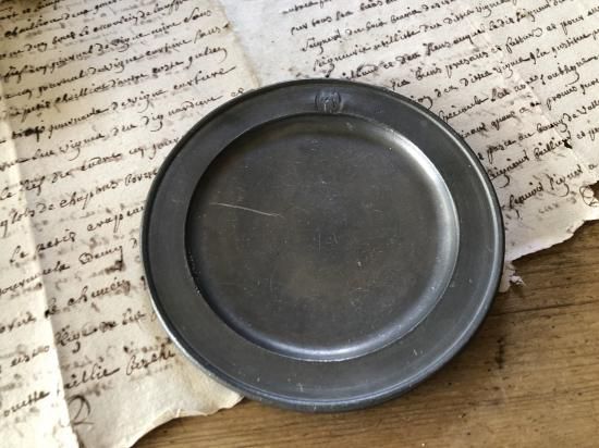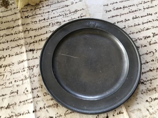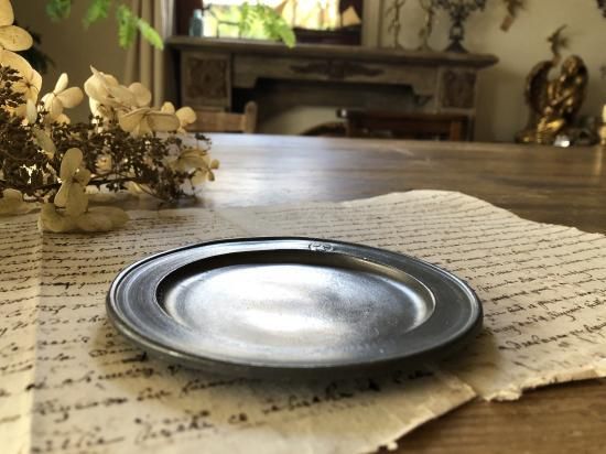 フランス/天使がラッパを吹く刻印の小ぶりなラウンドピュータープレート