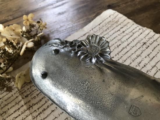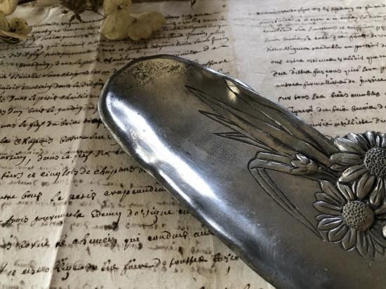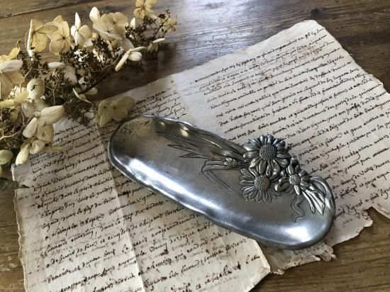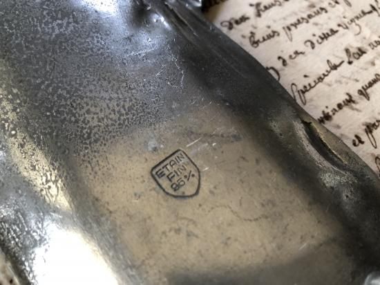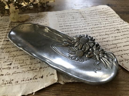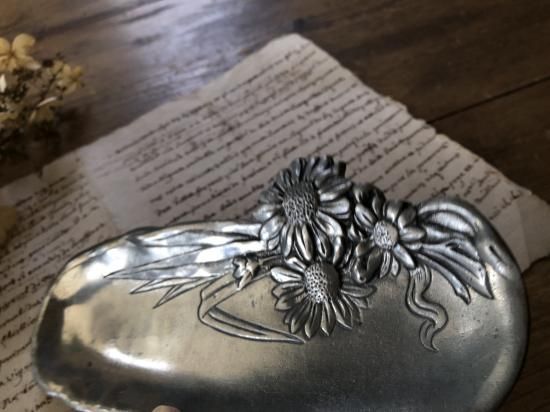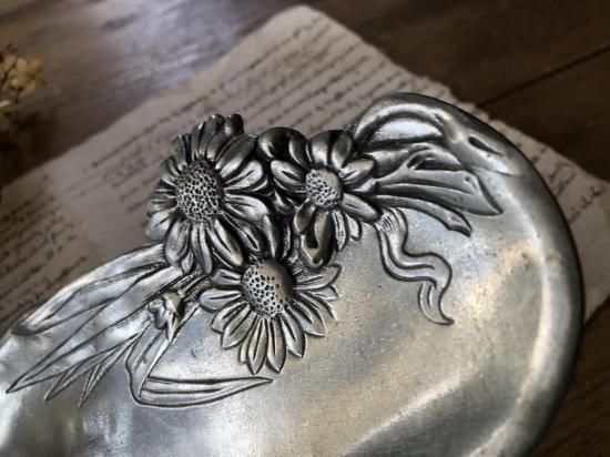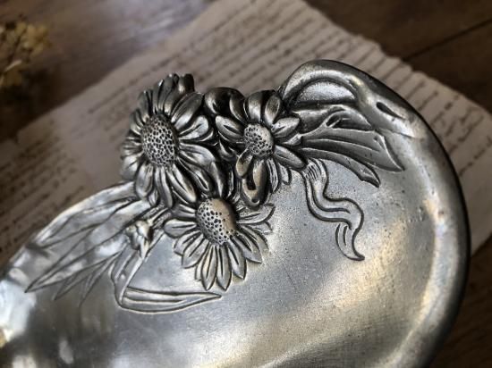 フランス/ETAIN FIN95%刻印のマムの花のピュータートレイ「B」