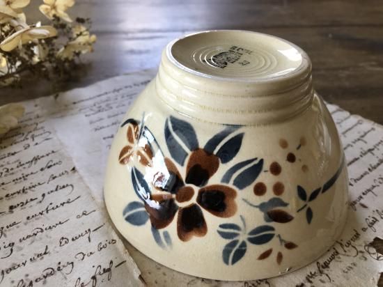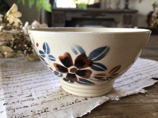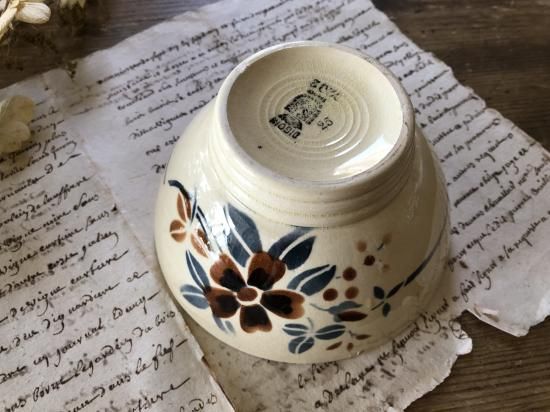 フランス/ディゴワン&サルグミンヌ(DIGIN&SARREGUEMINES)花のハンドペイントのカフェオレボウル