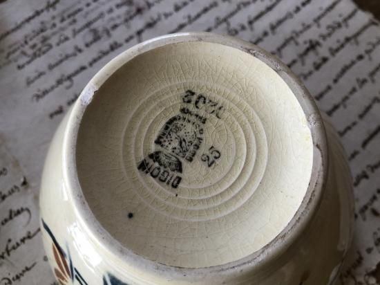ディゴワンでは、Digoin、Sarreguemines、Digoin &Sarregueminesの3つの刻印が当初使われていましたが、その後会社名をDigoin &Sarregueminesに変更し、1881年から総称をFaienceries de Sarreguemines、Digoin et Vitry-le-Francois(ヴィトリールフランソワ) と呼ぶようになります。ディゴワンでは、ディゴワン&サルグミンヌとして100年以上に渡り、数々の陶器生産を続けてきました。