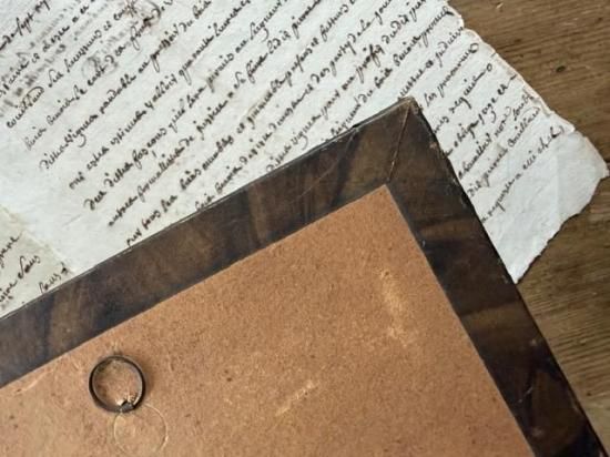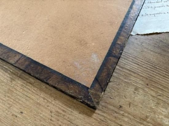 コンディション:木製フレームに経年の風合いがあります。角、端にスレ感があります。紙全体にはシミがあります。
