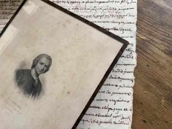 哲学者ジャン・ジャック・ルソーの絵が入ったフォトフレーム。
