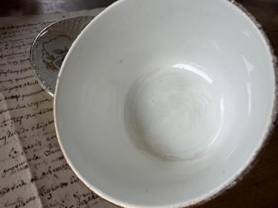 カップ底にのみ貫入があり、うっすらシミがあります。