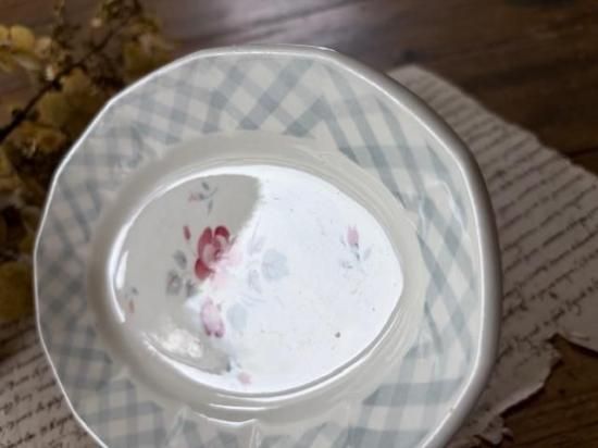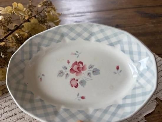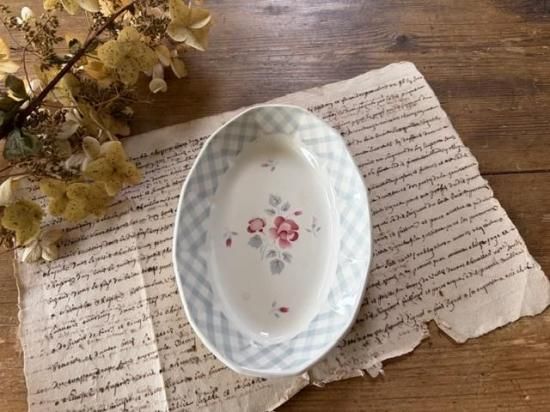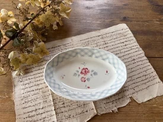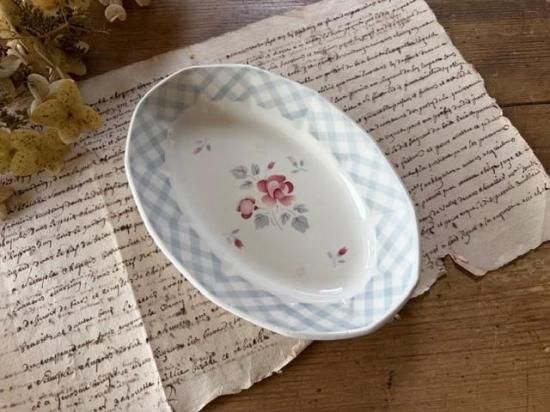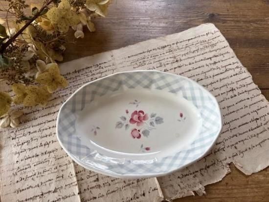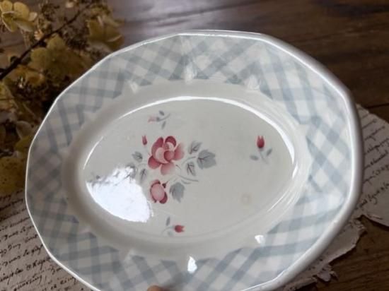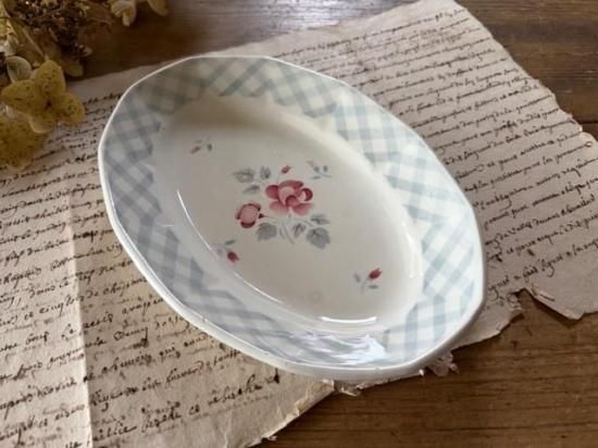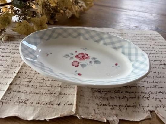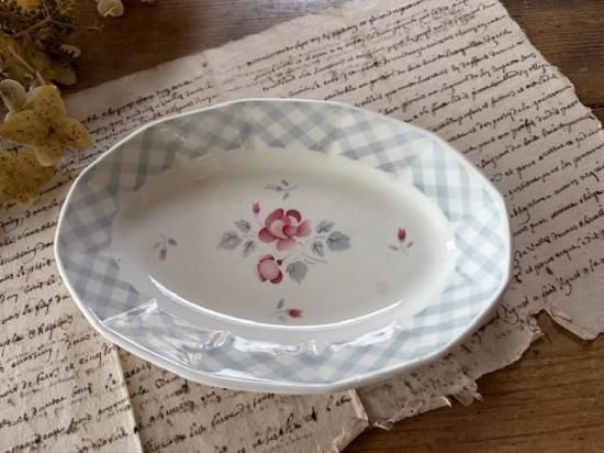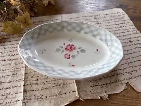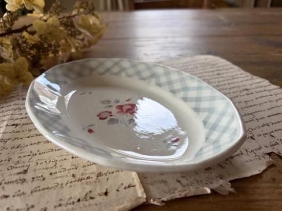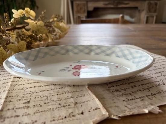 フランス/ディゴワン&サルグミンヌ(DIGIN&SARREGUEMINES)BASTEAギンガムチェックとバラの花のラヴィエ「A」