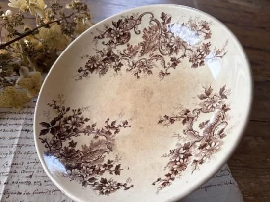 兄弟はここで、当時最新技術だった銅板転写の作陶を始めていきます。19世期後半には他の窯から有能な人物が集められ、窯は最盛期を迎えていきます。この時、経営に参加したイポリット・ブーランジェは1863年に工場のディレクターとなり、1878年に社名を変更しH・ブーランジェ(H・Boulenger&Cie)となっています。現在、市場で見ることのできるものは、量産ができるようになった1800年半ばから閉窯の1900年前半のものが多いようです。イポリット・ブーランジェ亡き後は彼の2人の息子が引き継ぎます。1902年にはクレイユは火事によって工場が閉鎖し、経営が困難になっていたクレイユモントローとモントロー工場を買収する形で合併し、HBCM(Hiperolyte Boulanger-Creil-Montereau)社となります。その頃、メトロの壁面に使用されるタイル製造で栄えます。ところが1934年、労働者のストライキによってショワジー・ル・ロワ工場は閉鎖し、それを機にここでの作陶が終わります。HBCM社として合併先のモントロー工場で作陶は続けられましたが、1955年に閉鎖し歴史に幕を降ろします。