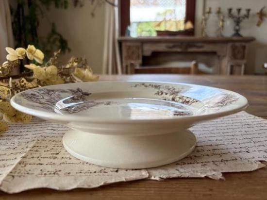 兄弟はここで、当時最新技術だった銅板転写の作陶を始めていきます。19世期後半には他の窯から有能な人物が集められ、窯は最盛期を迎えていきます。この時、経営に参加したイポリット・ブーランジェは1863年に工場のディレクターとなり、1878年に社名を変更しH・ブーランジェ(H・Boulenger&Cie)となっています。現在、市場で見ることのできるものは、量産ができるようになった1800年半ばから閉窯の1900年前半のものが多いようです。イポリット・ブーランジェ亡き後は彼の2人の息子が引き継ぎます。1902年にはクレイユは火事によって工場が閉鎖し、経営が困難になっていたクレイユモントローとモントロー工場を買収する形で合併し、HBCM(Hiperolyte Boulanger-Creil-Montereau)社となります。その頃、メトロの壁面に使用されるタイル製造で栄えます。ところが1934年、労働者のストライキによってショワジー・ル・ロワ工場は閉鎖し、それを機にここでの作陶が終わります。HBCM社として合併先のモントロー工場で作陶は続けられましたが、1955年に閉鎖し歴史に幕を降ろします。