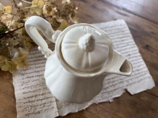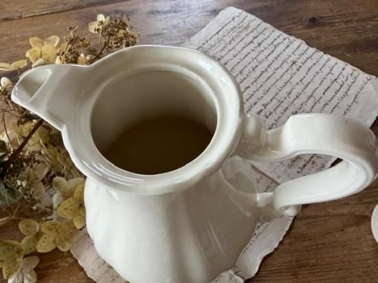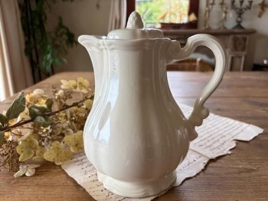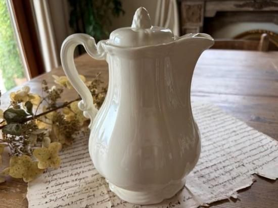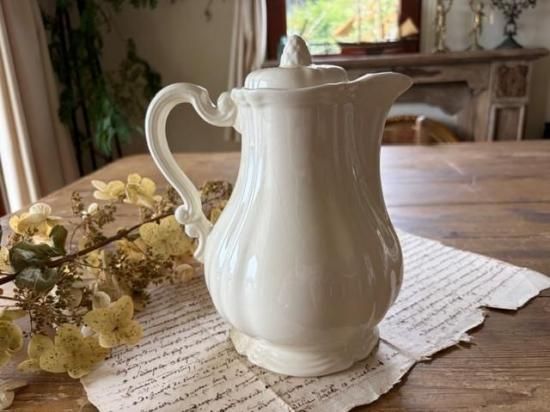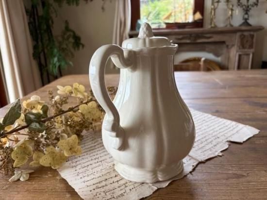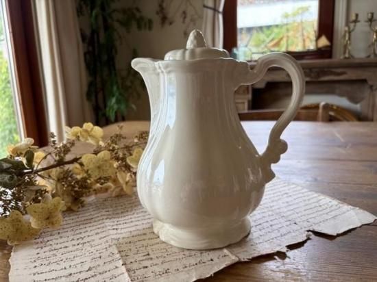 サルグミンヌ(SARREGUEMINES)の花リムの美しいコーヒーポット。