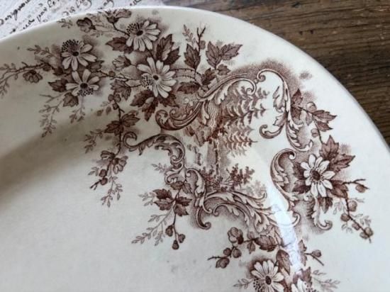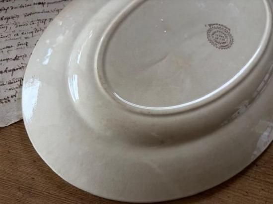 兄弟はここで、当時最新技術だった銅板転写の作陶を始めていきます。19世期後半には他の窯から有能な人物が集められ、窯は最盛期を迎えていきます。この時、経営に参加したイポリット・ブーランジェは1863年に工場のディレクターとなり、1878年に社名を変更しH・ブーランジェ(H・Boulenger&Cie)となっています。現在、市場で見ることのできるものは、量産ができるようになった1800年半ばから閉窯の1900年前半のものが多いようです。イポリット・ブーランジェ亡き後は彼の2人の息子が引き継ぎます。1902年にはクレイユは火事によって工場が閉鎖し、経営が困難になっていたクレイユモントローとモントロー工場を買収する形で合併し、HBCM(Hiperolyte Boulanger-Creil-Montereau)社となります。その頃、メトロの壁面に使用されるタイル製造で栄えます。ところが1934年、労働者のストライキによってショワジー・ル・ロワ工場は閉鎖し、それを機にここでの作陶が終わります。HBCM社として合併先のモントロー工場で作陶は続けられましたが、1955年に閉鎖し歴史に幕を降ろします。