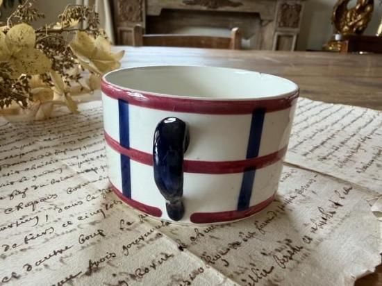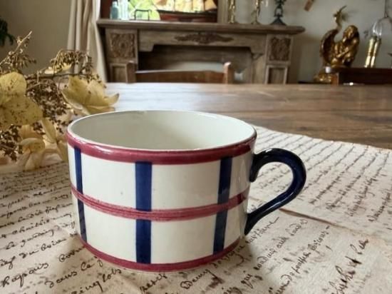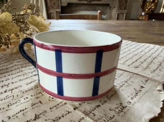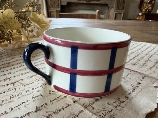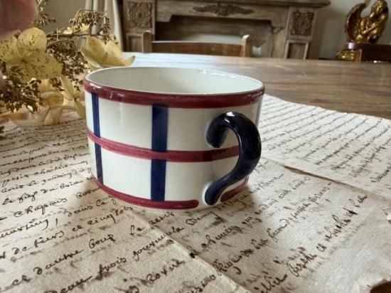 フランス/クレイユ・エ・モントロー窯HBCM/ベアルヌ(Be'arn)バスク柄のマグカップ「E」