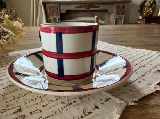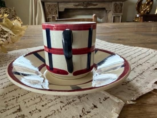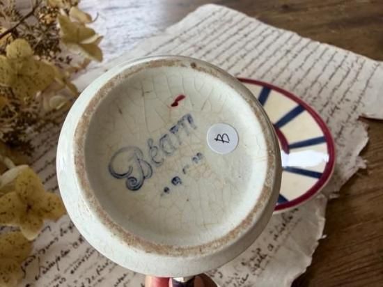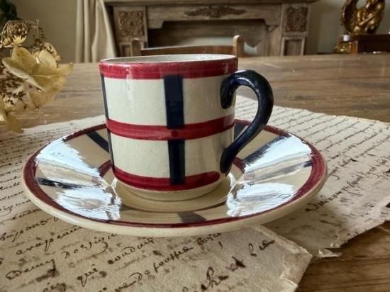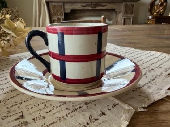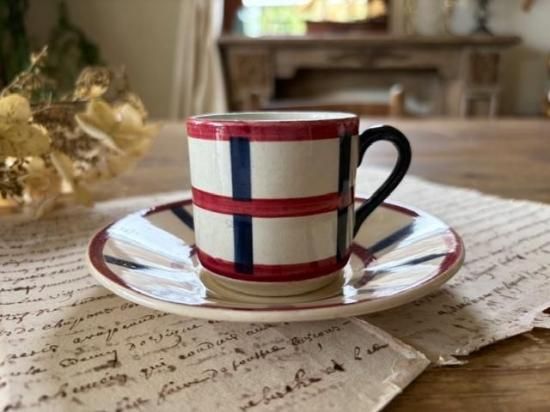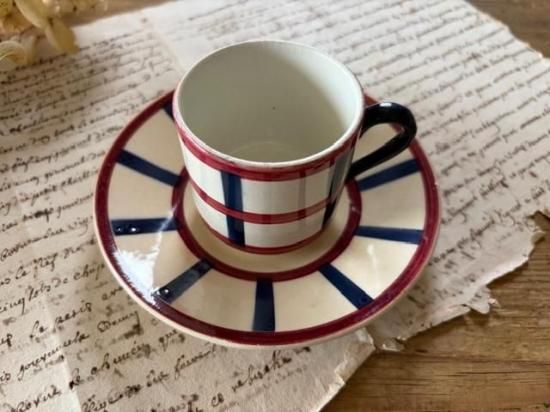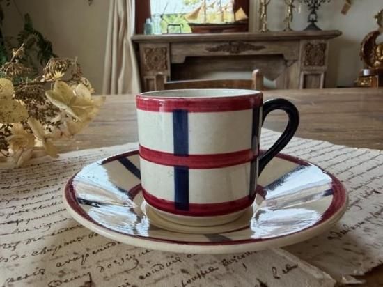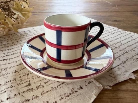 フランス/クレイユ・エ・モントロー窯HBCM/ベアルヌ(Be'arn)バスク柄のカップ&ソーサー「B」