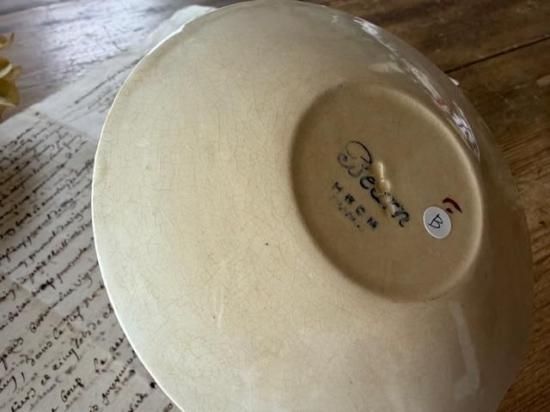 兄弟はここで、当時最新技術だった銅板転写の作陶を始めていきます。19世期後半には他の窯から有能な人物が集められ、窯は最盛期を迎えていきます。この時、経営に参加したイポリット・ブーランジェは1863年に工場のディレクターとなり、1878年に社名を変更しH・ブーランジェ(H・Boulenger&Cie)となっています。現在、市場で見ることのできるものは、量産ができるようになった1800年半ばから閉窯の1900年前半のものが多いようです。イポリット・ブーランジェ亡き後は彼の2人の息子が引き継ぎます。1895年にはクレイユ工場は火事によって閉鎖し、経営が困難になっていたクレイユモントローとモントロー工場を買収する形で1920年に合併、HBCM(Hiperolyte Boulanger-Creil-Montereau)社となります。その頃、メトロの壁面に使用されるタイル製造で栄えます。ところが1934年、労働者のストライキによってショワジー・ル・ロワの工場が閉鎖し、それを機にショワジー・ル・ロワでの作陶は終わります。HBCM社として合併先のモントロー工場で作陶は続けられましたが、それも1955年に閉鎖し歴史に幕を降ろします。