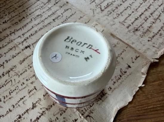 フランス/クレイユ・エ・モントロー窯HBCM/ベアルヌ(Be'arn)バスク柄の小さなカップ「A」