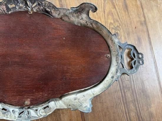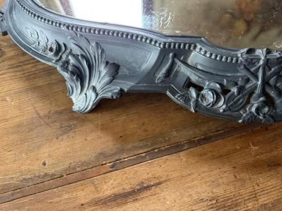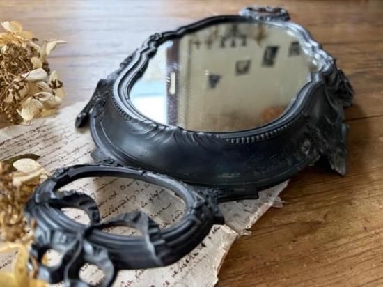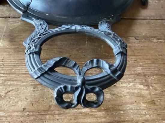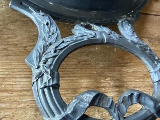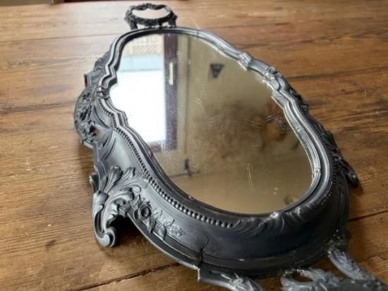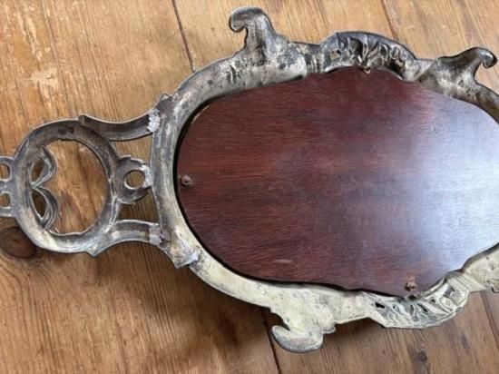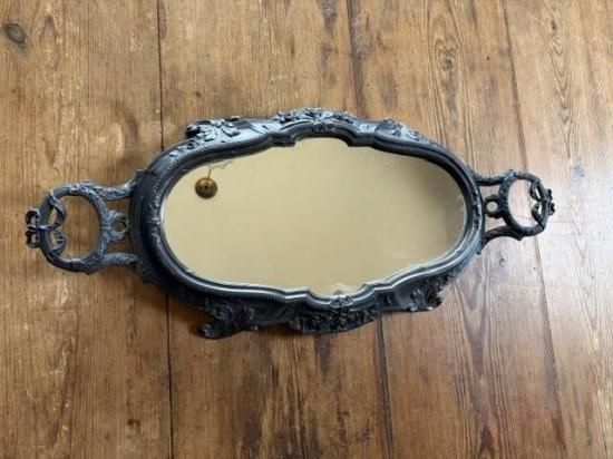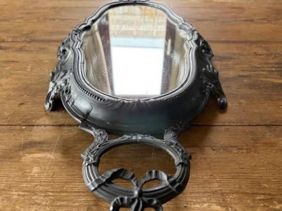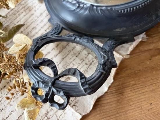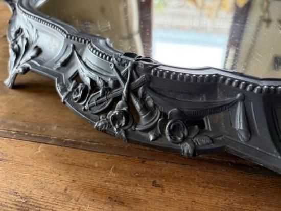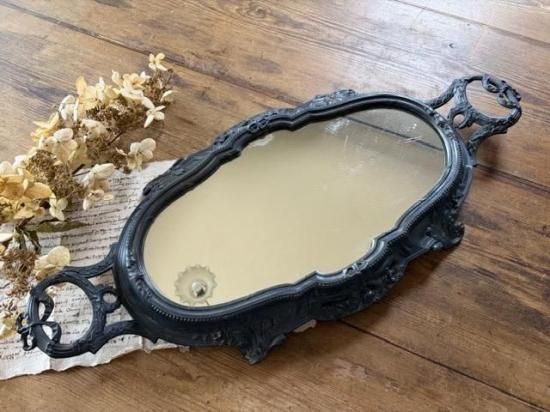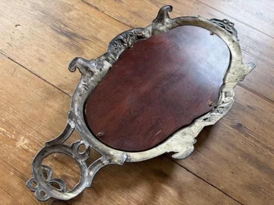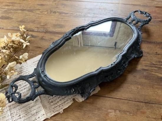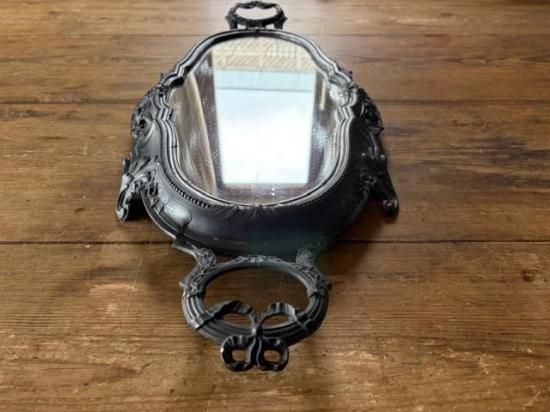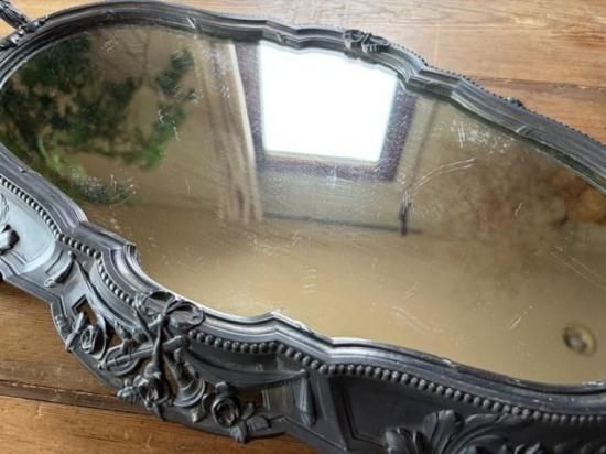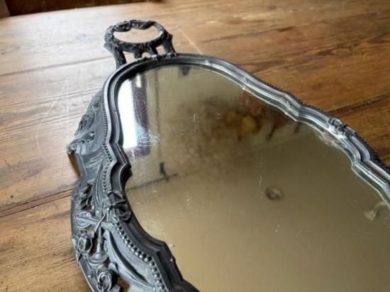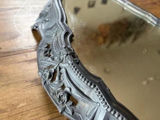 フランス/リボンとロカイユ装飾のピューター製ミラープレート