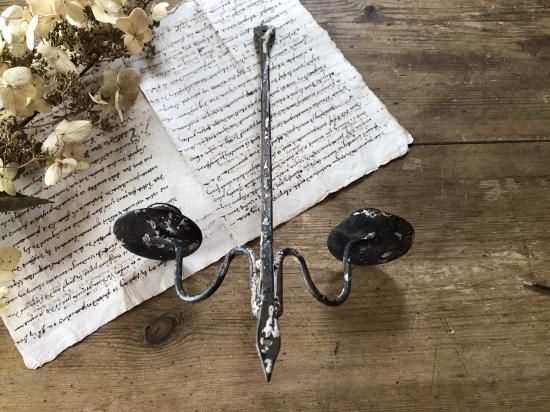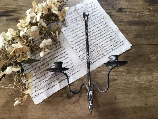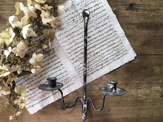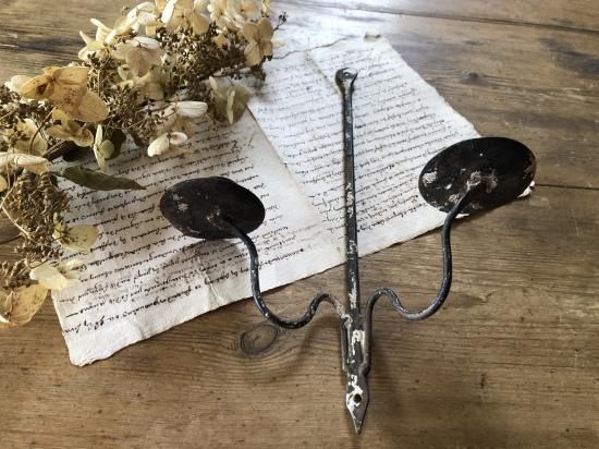 英国イングランド/シャビーなアイアンが素敵な壁掛けキャンドルホルダー