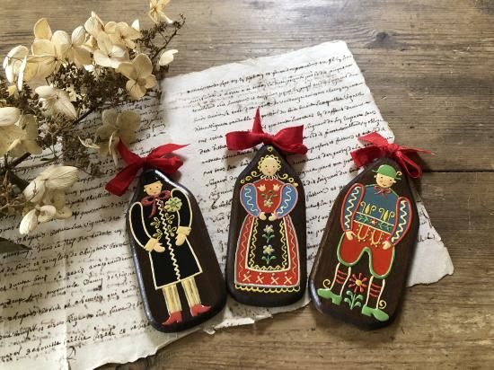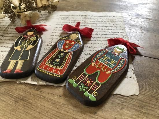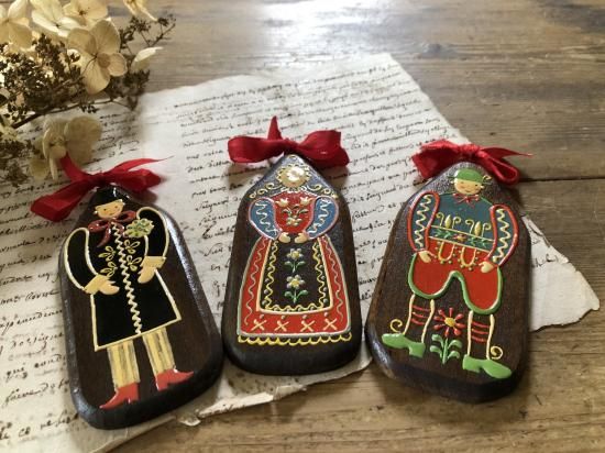 オーストリア/BOSSEハンドペイントのビンテージ/木製壁掛け3点組み