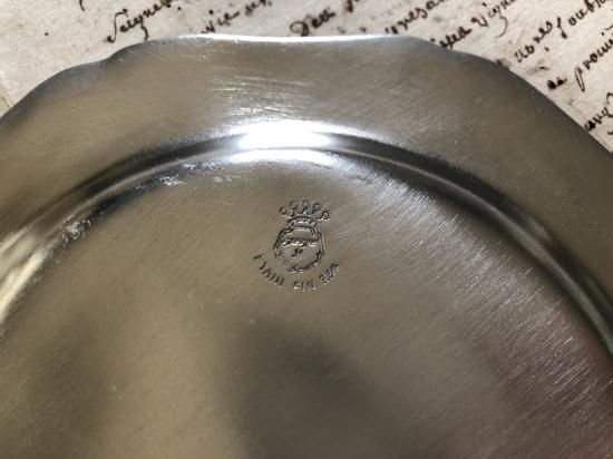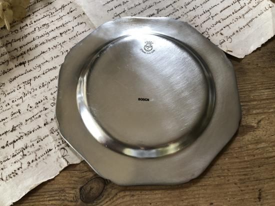 ドイツ/BOSCH ETAN FIN 95%花リムの美しいピュータープレート