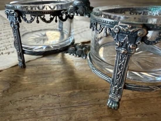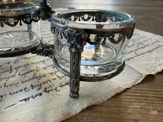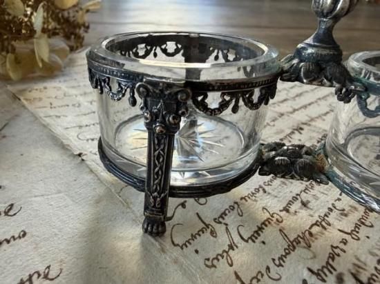 フランス/リボンガーランドとライオンの足指台のエレガントなガラスのサルロン