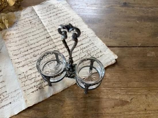 金属部分にうっすら緑青があるのも、アンティークらしい雰囲気です。