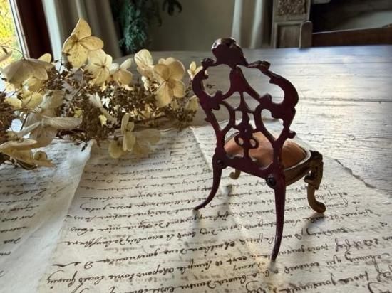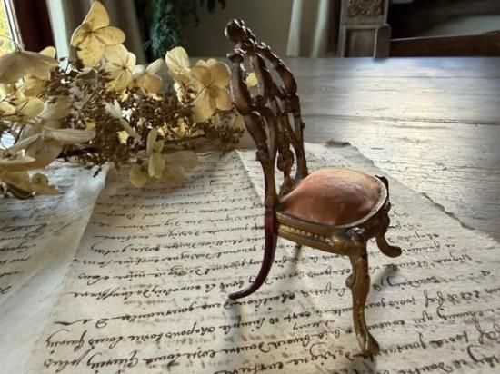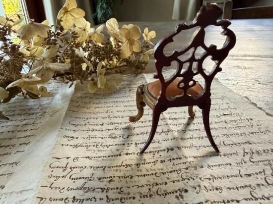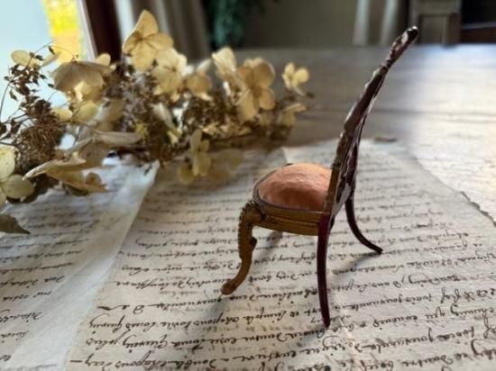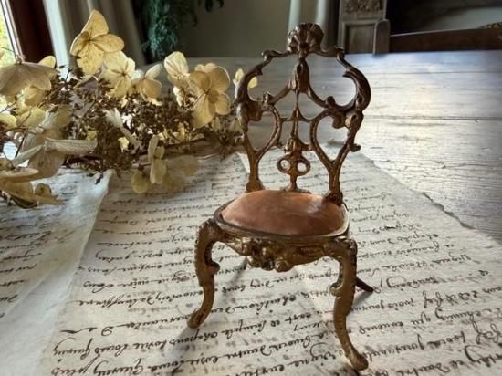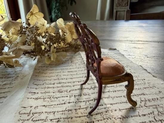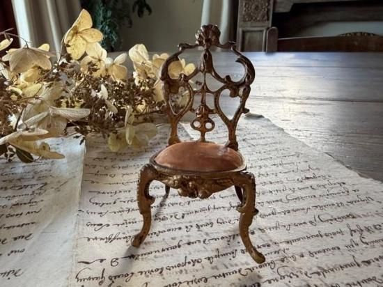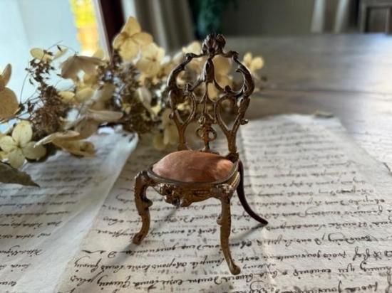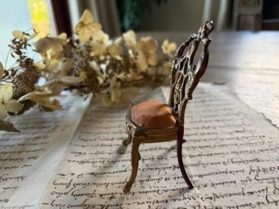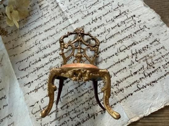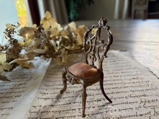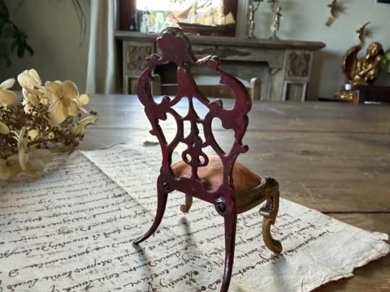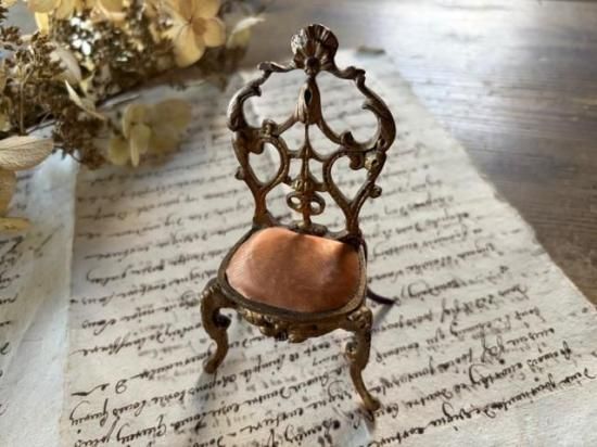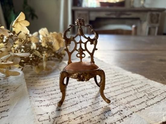 ロカイユ装飾の背もたれが素敵な小さなチェア。