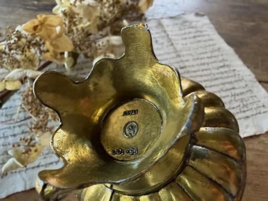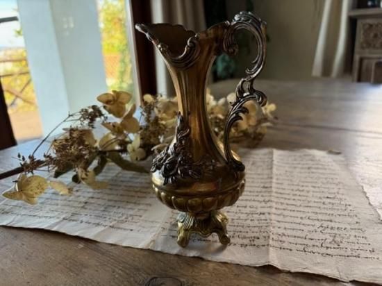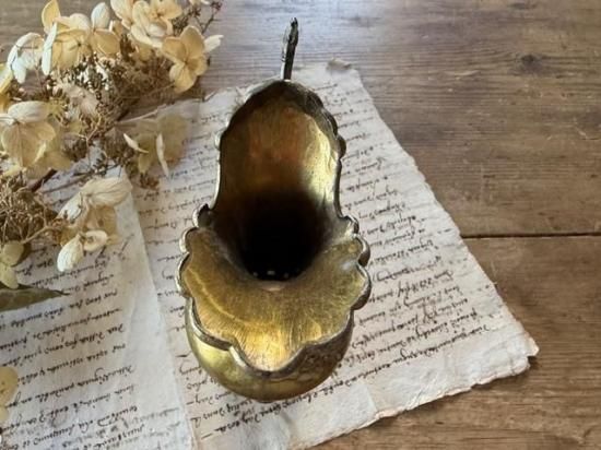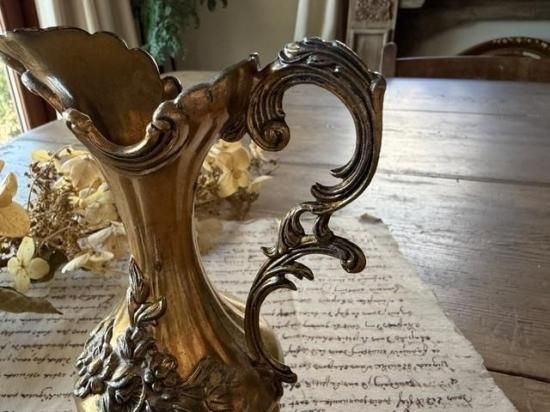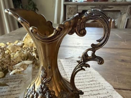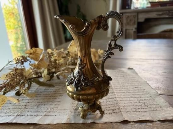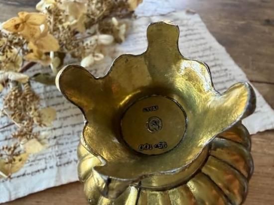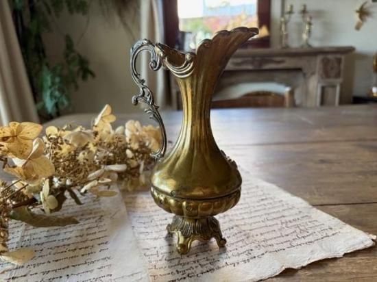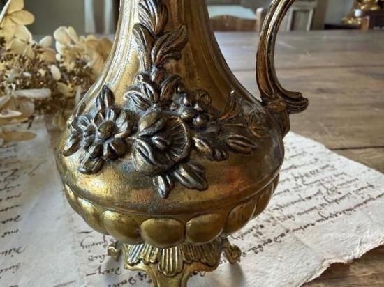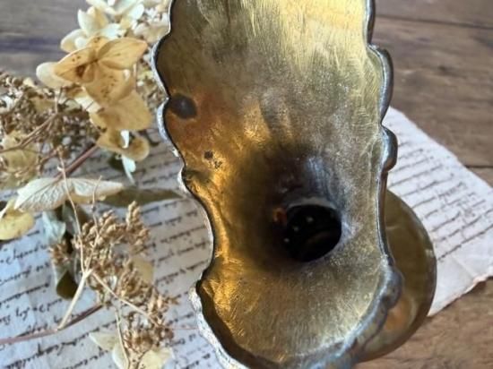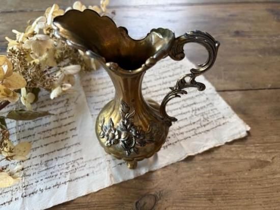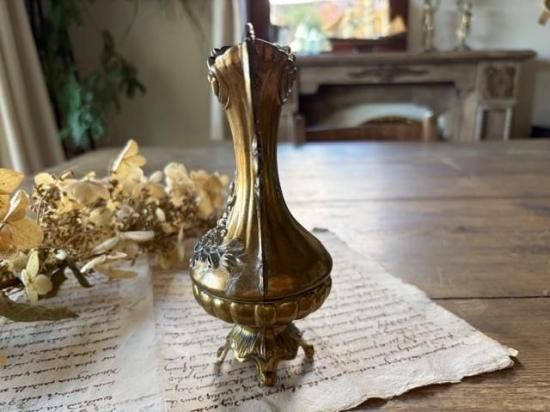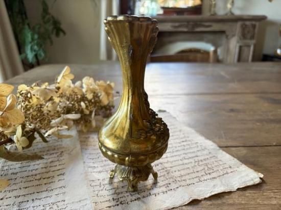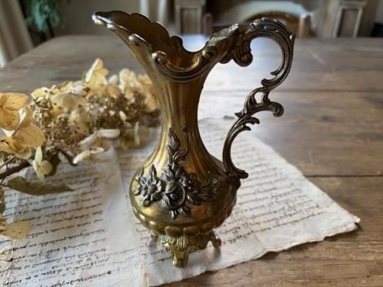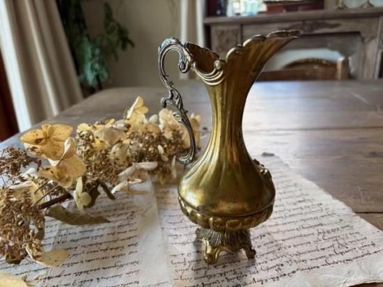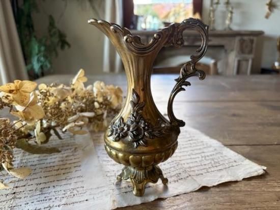イタリア/花の装飾が素敵な金属製のゴールドの花瓶