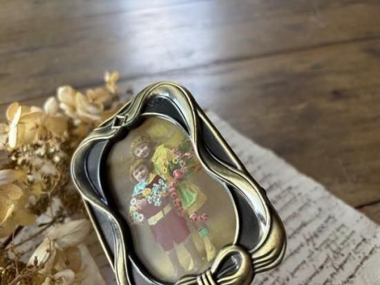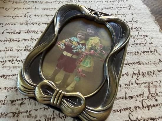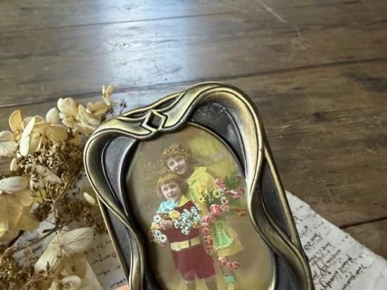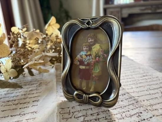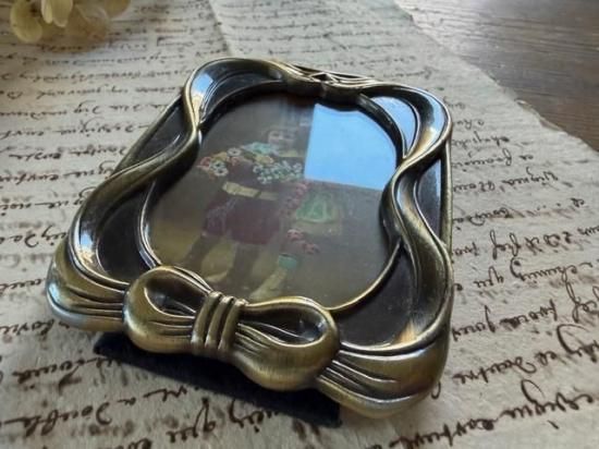 渋いゴールドのアールヌーヴォーなリボンのフォトスタンド。
