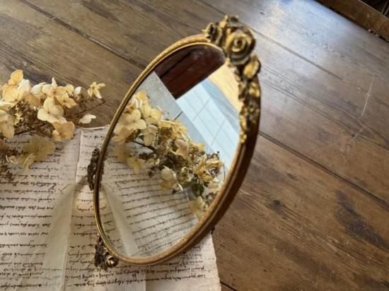 立体的な薔薇の装飾が美しいスタンドミラー。