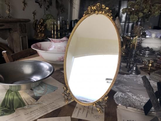 フランス/金色の薔薇の装飾のオーバルスタンドミラー