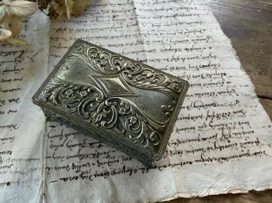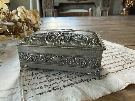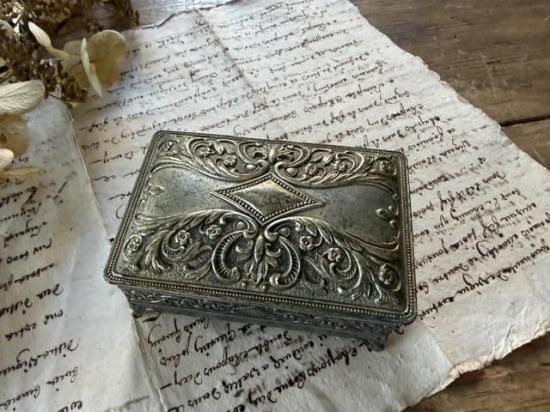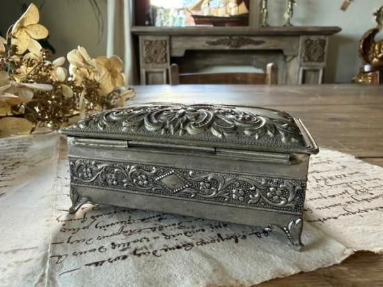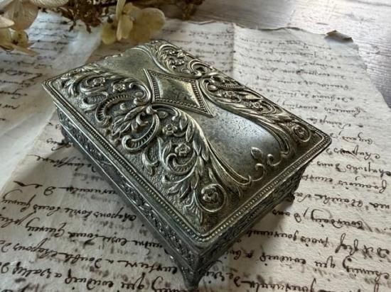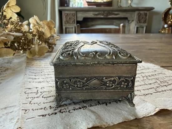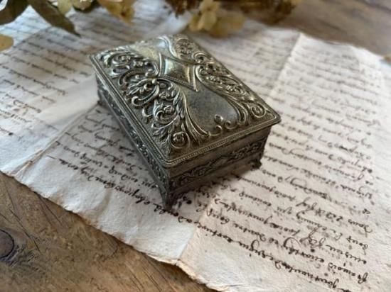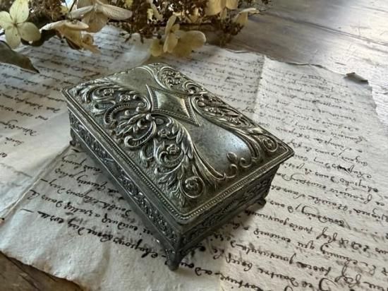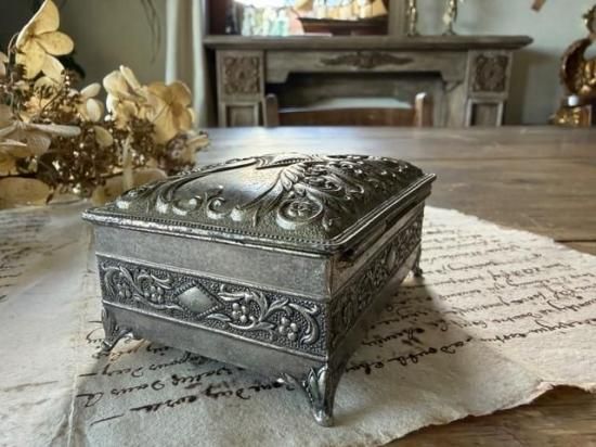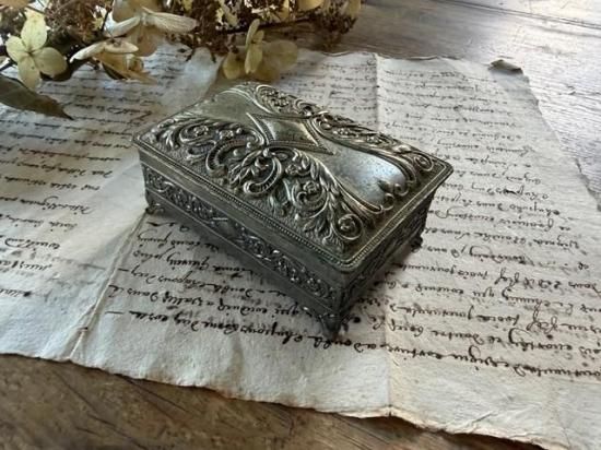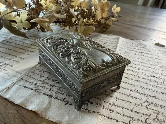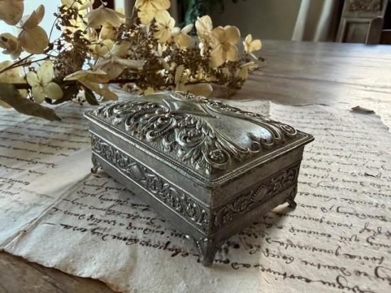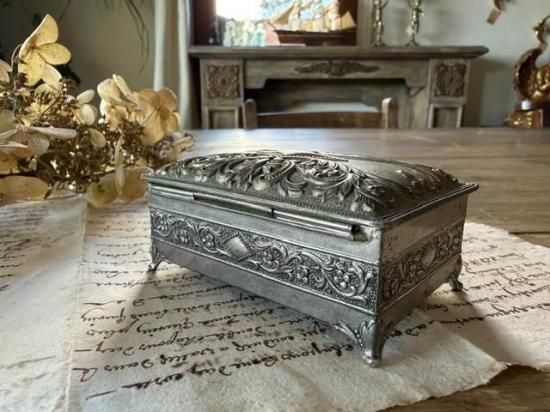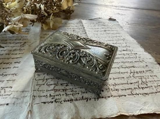 英国イングランド/ロカイユ装飾のシルバー色の宝石箱