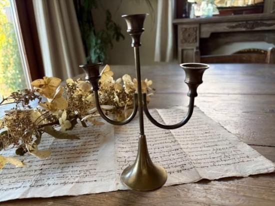 真鍮の渋い輝きも素敵なキャンドルスタンド。