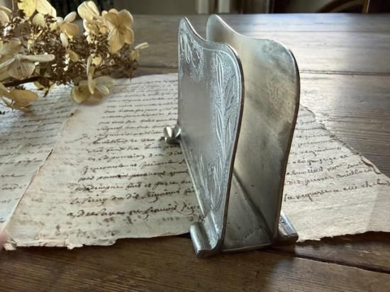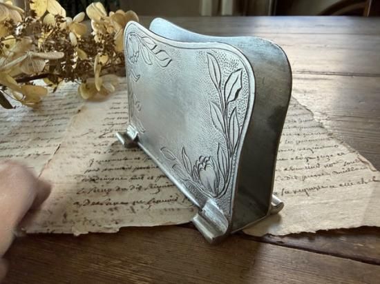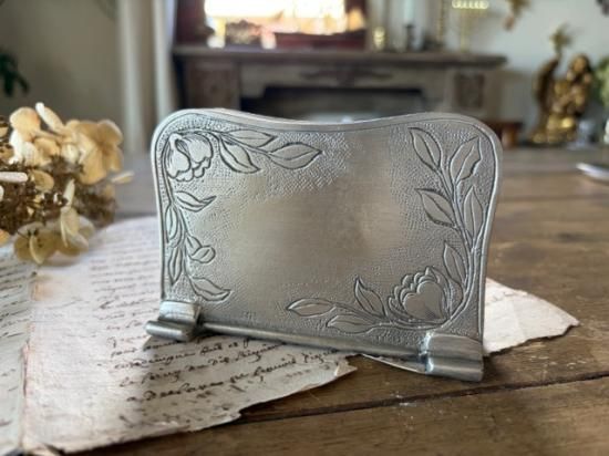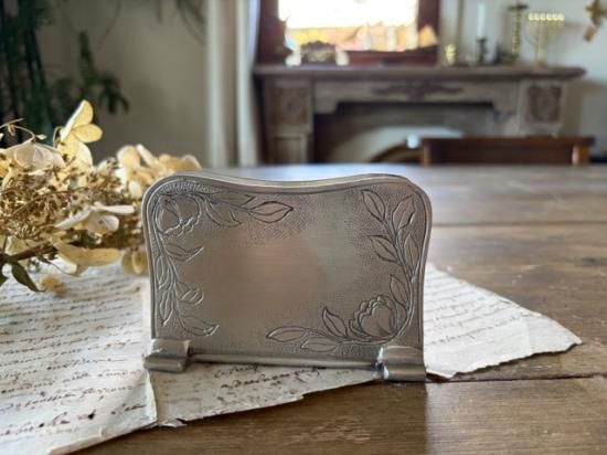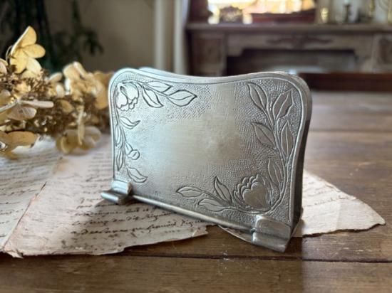 フランス/花の装飾が素敵なシルバー調ピューター製のレターラック